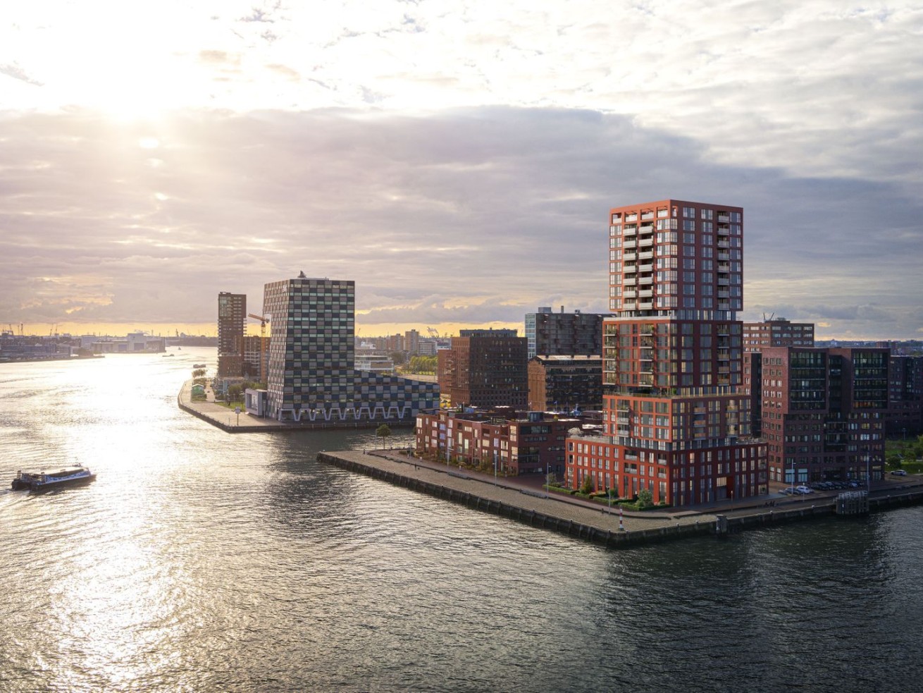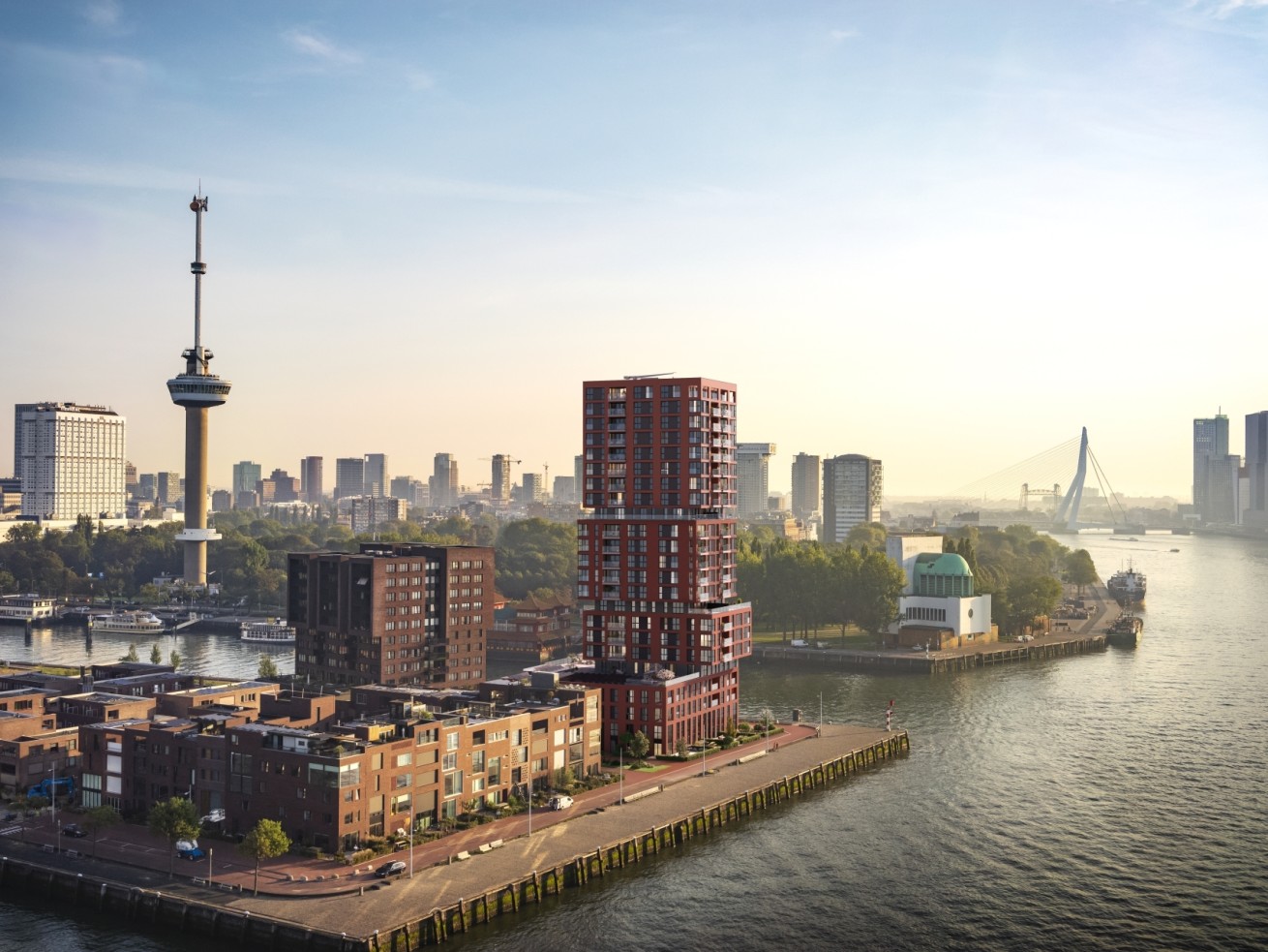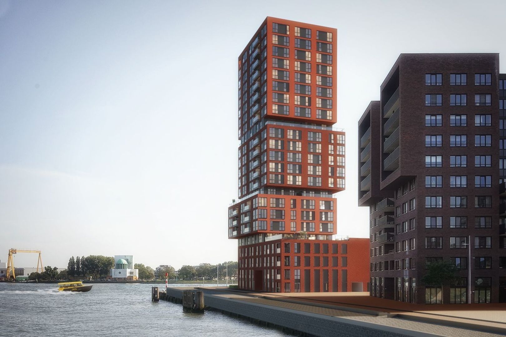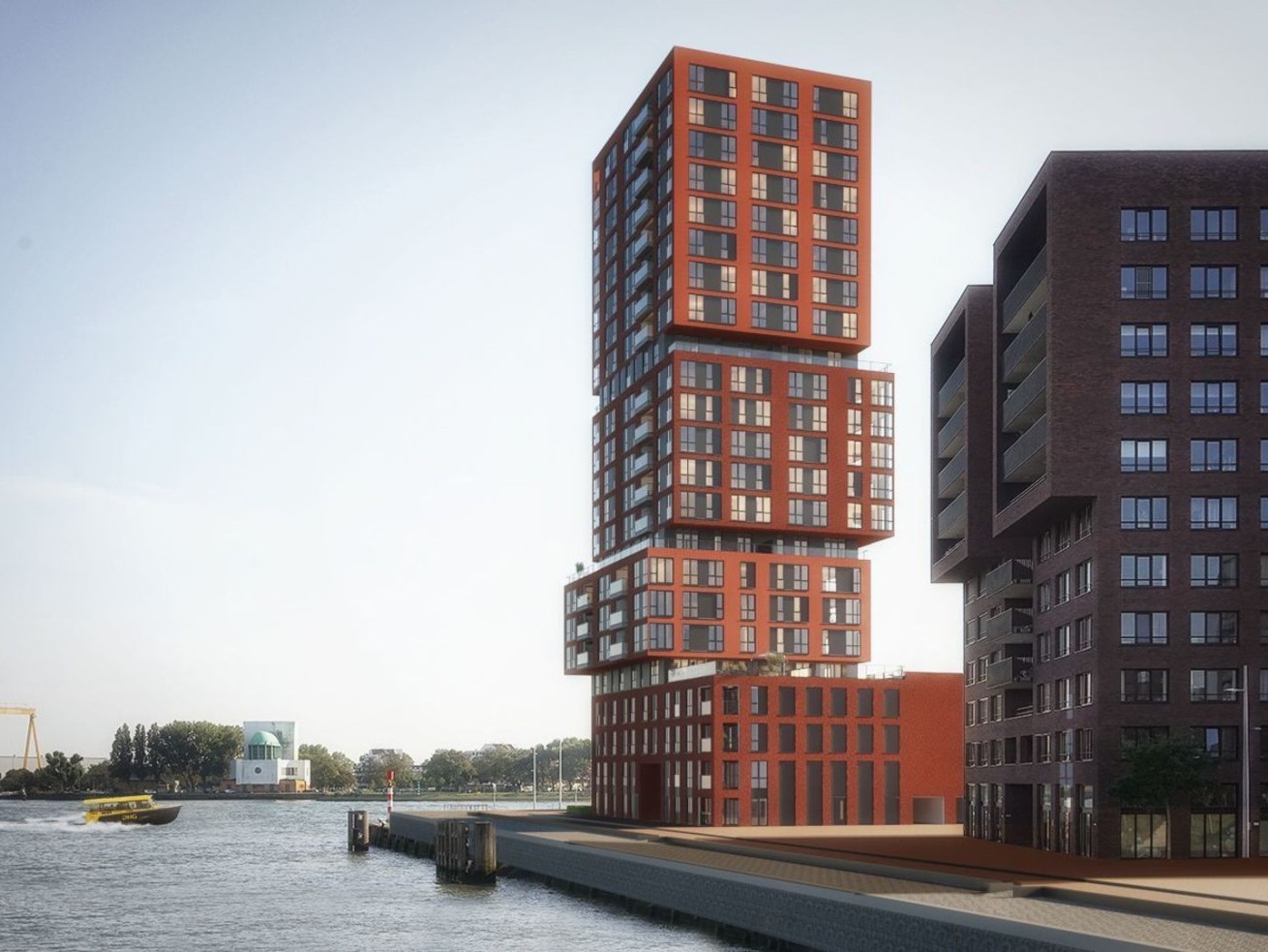 Op de kop van de Müllerpier in Rotterdam verrijst straks: STACK. Een expressief gebouw en al van ver herkenbaar. Een sculptuur van gestapelde blokken. Het silhouet lijkt constant in beweging, net als de Maas. STACK is eigenzinnig van buiten en exclusief van binnen. Het gebouw biedt ruimte aan ruime eengezinswoningen met tuin, fraaie overhoekse appartementen met ruime balkons of terrassen en luxe penthouses. Grote ramen bieden een spectaculair uitzicht op de Maas, de haven, het park en de stad. In de 70 meter hoge woontoren komen 77 luxe appartementen, 2 penthouses en 6 eengezinswoningen.